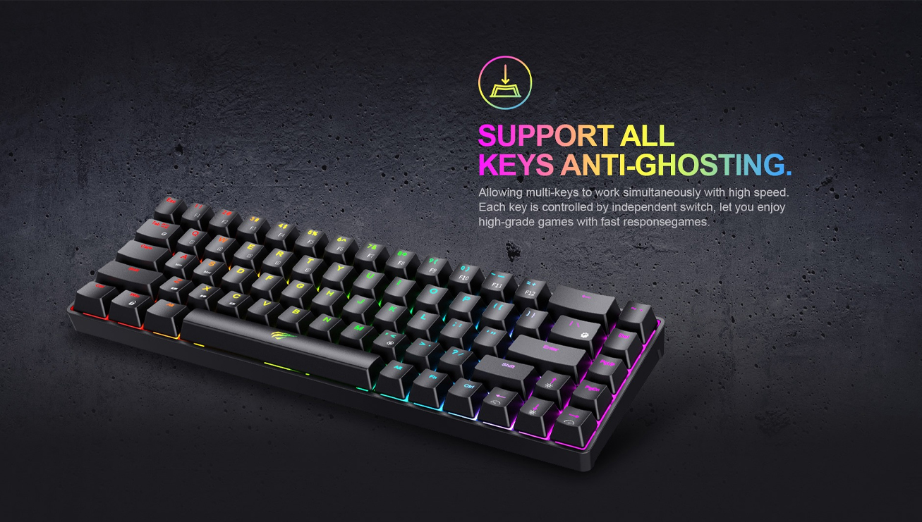 Havit KB860L es uno de los mejores teclados para juegos del mercado. Tiene todo lo que podrías desear en términos de nuevas características. Tiene un diseño del 60% para que tengas todas las teclas al alcance de tu mano.